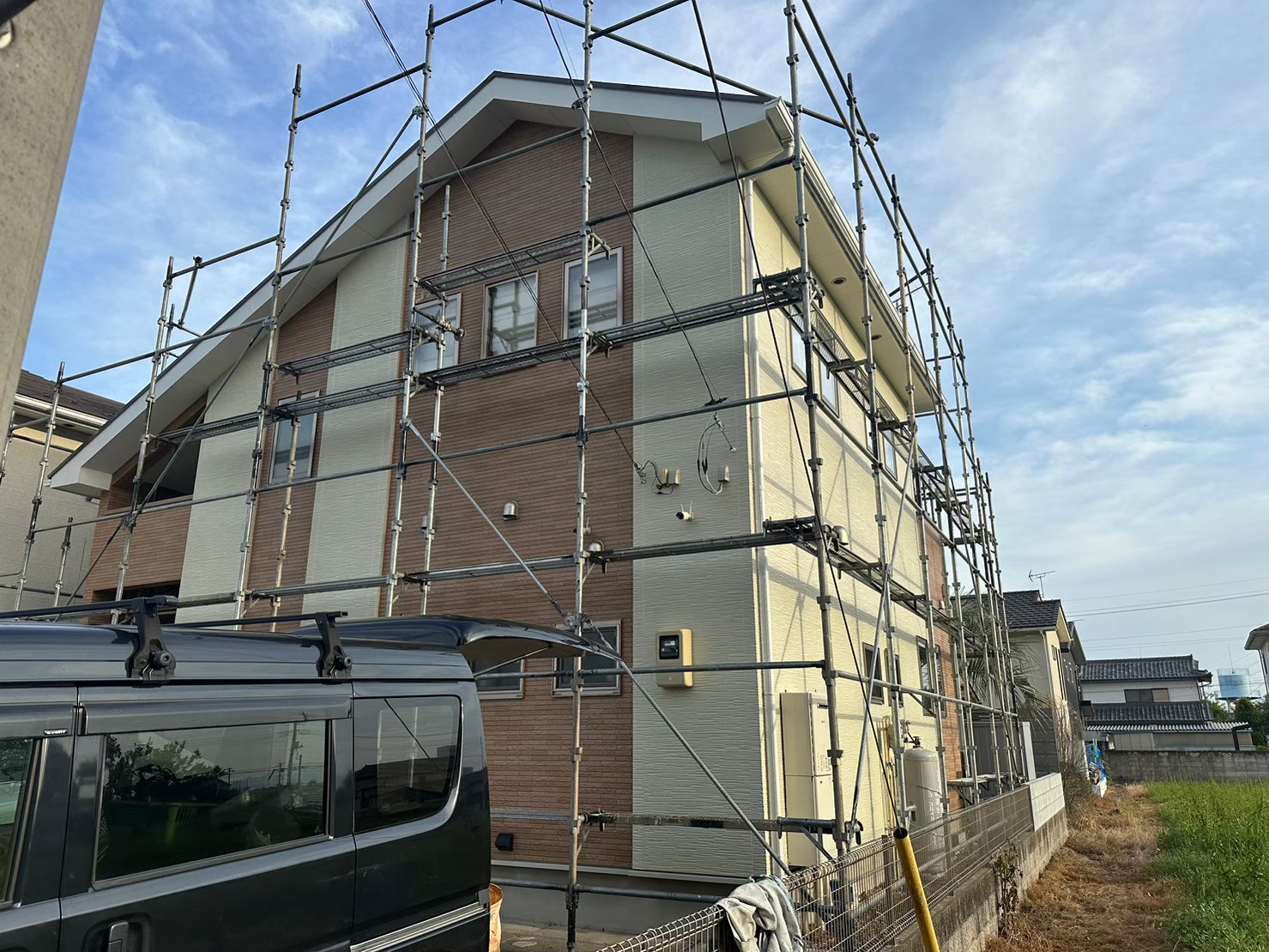 特に足場は建物の高さや周囲の状況で大きく変動し、狭い道路や隣家が近い場合は仮設の工夫が必要になって費用が上がることが多いです。勾配が急な屋根や特殊形状も工期と人手を増やす要因になります。